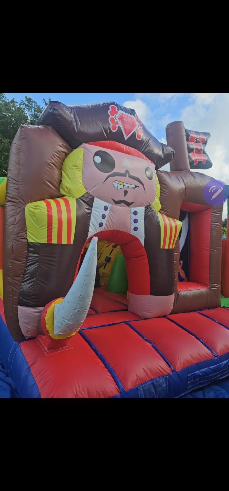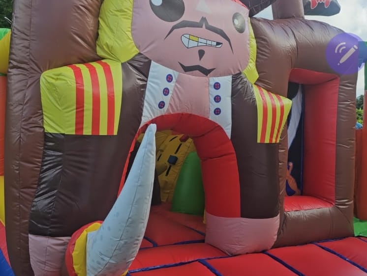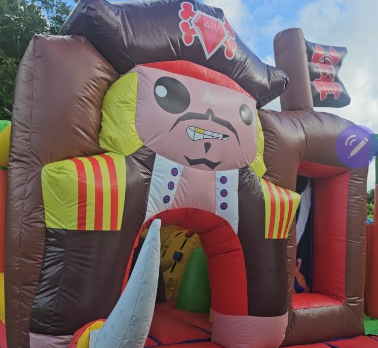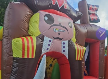 Location de chateaux gonflable thème pirate, avec jeux et tobogan interieur, à partir de 2 ans.